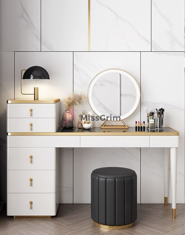 ۱. میز آرایش چراغدار و حرفهای (مخصوص گریم) این مدلها، بهترین گزینه برای کسانی هستند که به آرایش حرفهای علاقهمندند یا نیاز به نورپردازی کامل دارند. مجهز به چراغهای LED یا لامپهای هالیوودی (یا نورهای مخفی بکلایت)، این میزها محیطی شبیه به استودیوهای حرفهای فراهم میکنند تا هیچ سایهای در فرآیند آرایش شما تأثیر نگذارد.