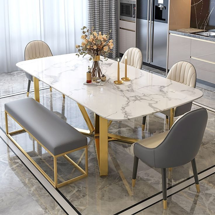 - ۱ نیمکت نشیمن پارچهای: یک نیمکت شیک برای تکمیل ظرفیت میز و افزودن عنصری متفاوت به چیدمان.