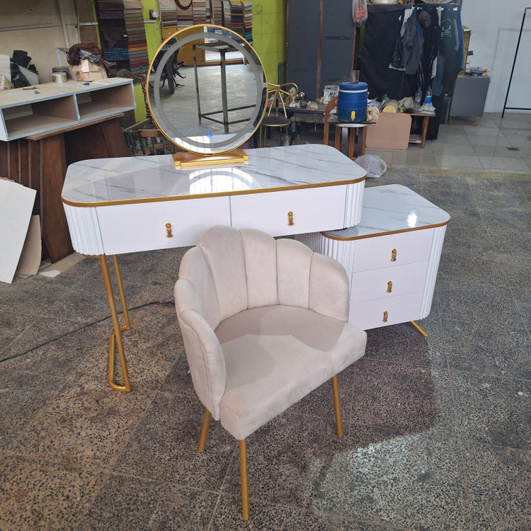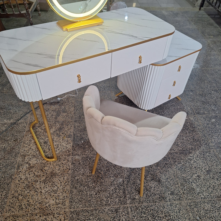 میز آرایش خاص صندلی صدفی و آیینه چراغدار لمسی