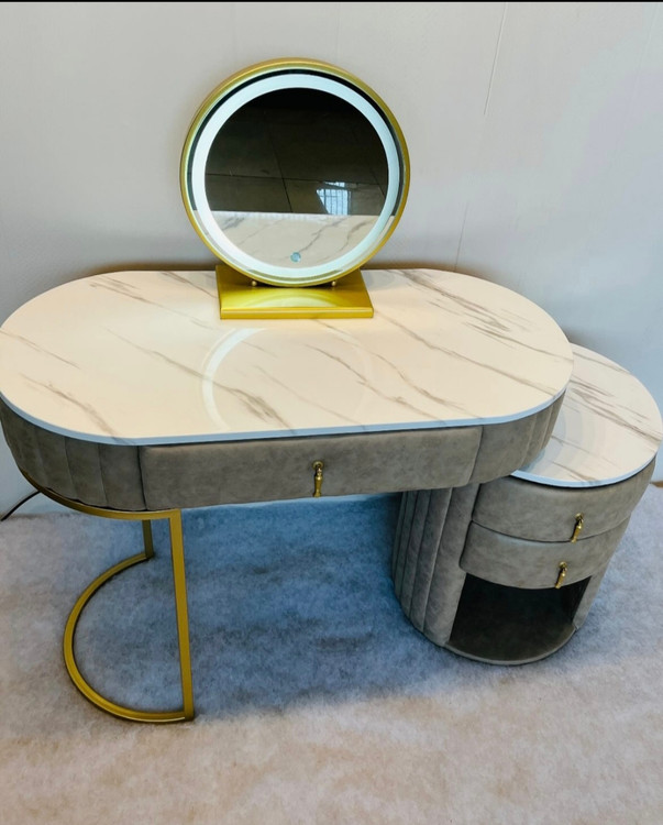 میز آرایش پارچهای دوخت شیاری و آیینه چراغدار لمسی